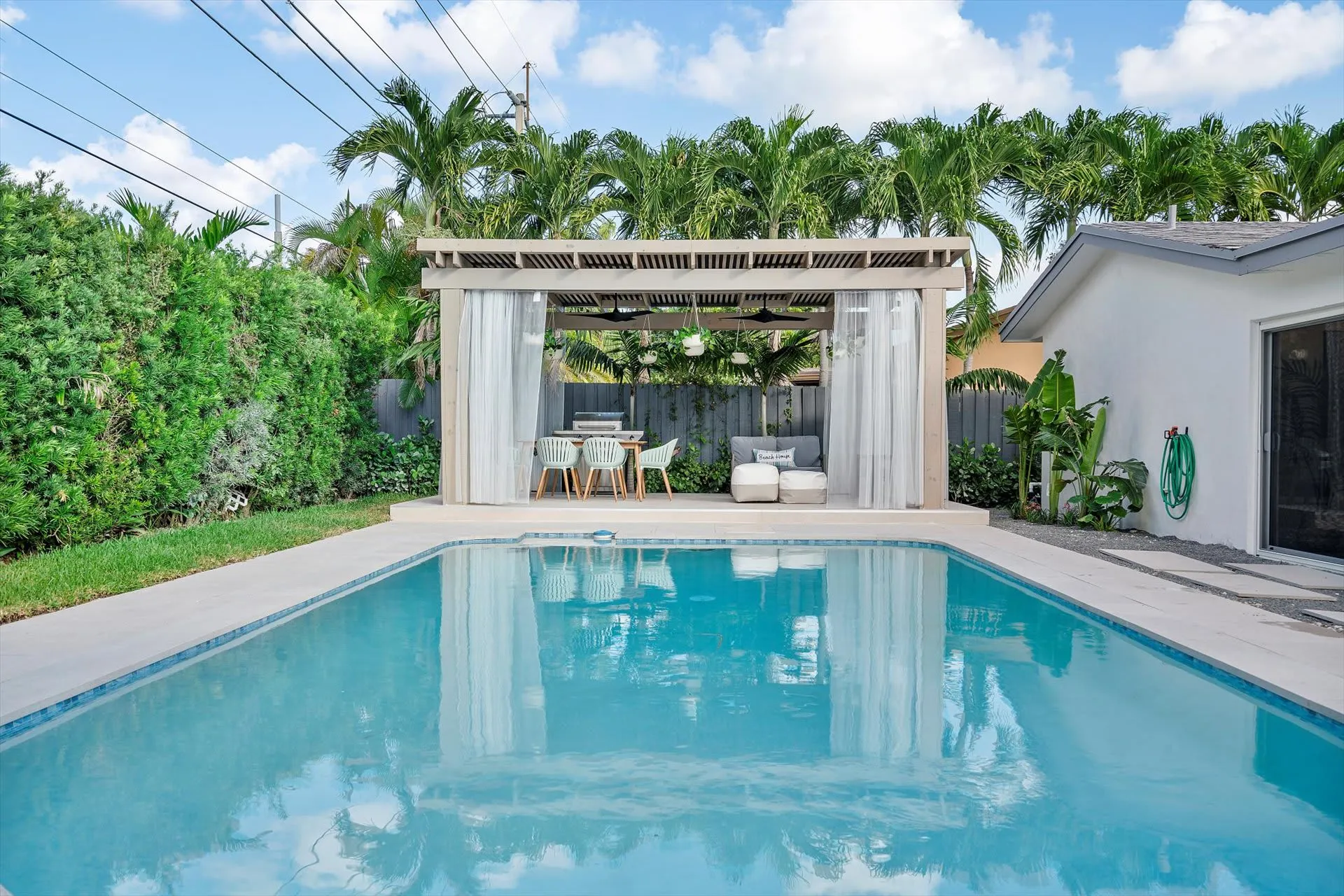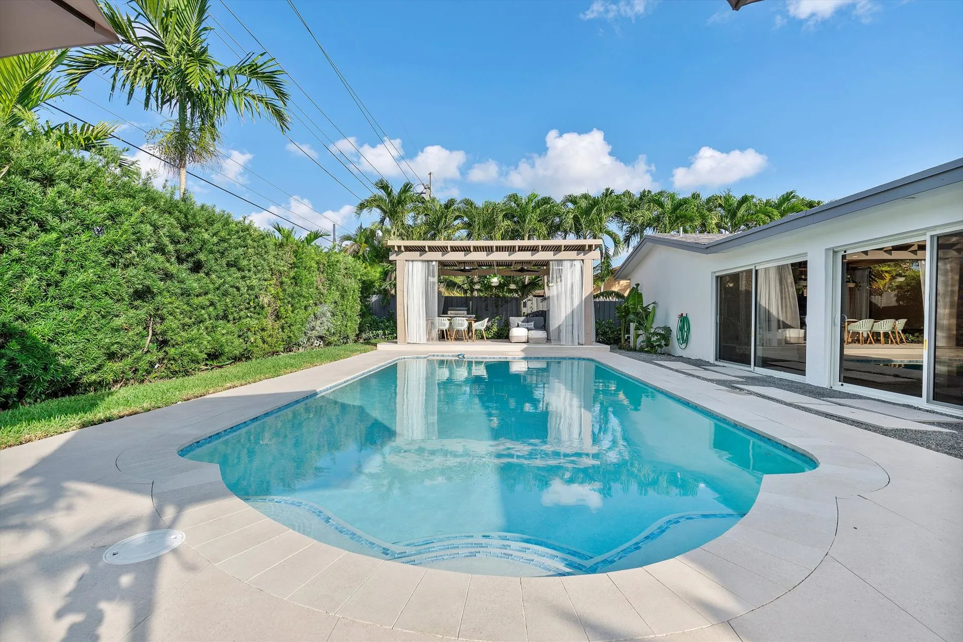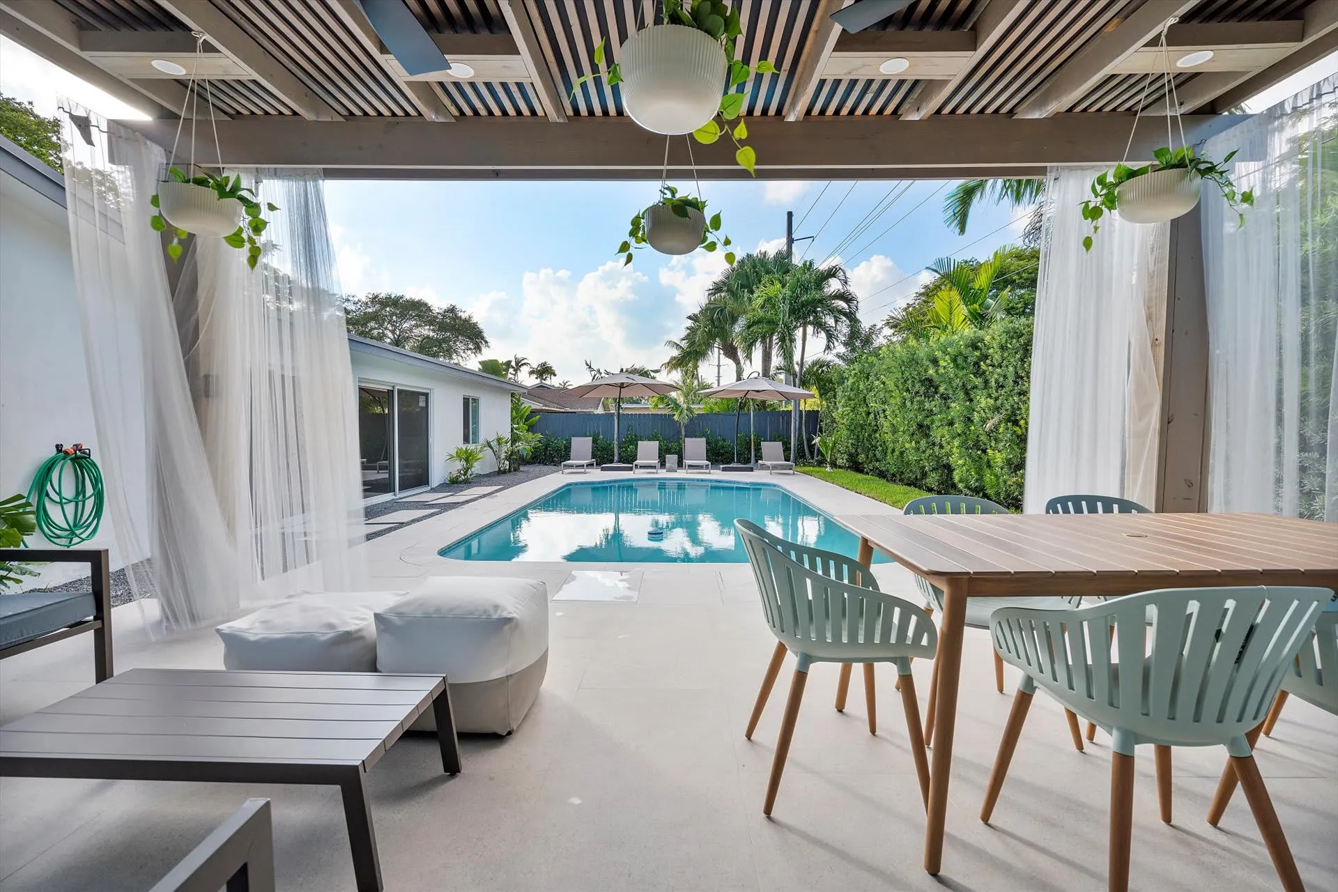 - Covered pergola with dining